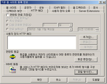 asp 오류조치 | IIS에 FLV확장자 MINE타입 등록 방법