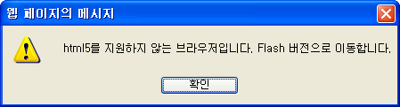 alert('html5를 지원하지 않는 브라우저입니다. Flash 버전으로 이동합니다.');
