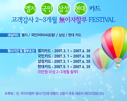LG,KB,삼성,현대카드 2~3개월 무이자할부