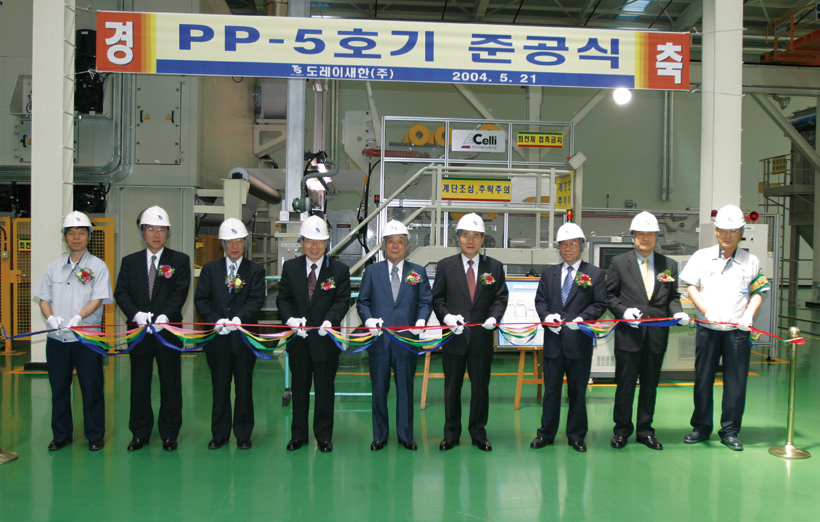도레이새한은 한발 앞서 투자하고 신제품을 개발함으로써 기회를 선점하고자 했다. 2002년 10월, PP-4호기의 개조를 마무리하며 SSMMS(Spunbond Spunbond Meltblown Meltblown Spunbond) 타입의 다층 설비를 아시아 최초로 가동했으며 PP-5호기의 증설을 결정했다. 연산 1만 4,000톤 규모의 PP-5호기는 2003년 12월에 가동, 아시아 최초로 복합방사를 적용했다. 선행투자가 이루어진 PP-5호기의 가동으로 총 연산 4만 9,000톤이라는 국내 최대 규모의 생산능력을 갖추고 도레이새한은 명실상부한 아시아 1위로 자리매김했다. 2005년 3월에는 그간의 생산기술 노하우가 집약된 초경량 부직포 고속생산기술 관련 특허를 따내며 NT(New Technology) 인증 마크를 획득했다.
