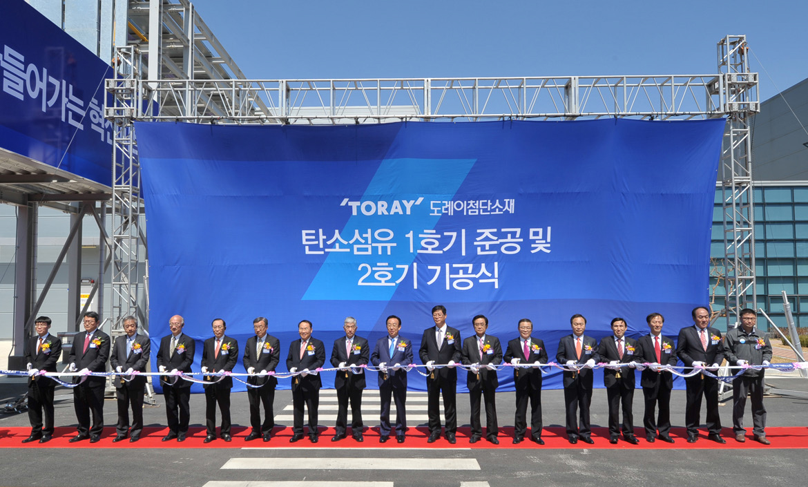 2013년 4월 도레이첨단소재 구미 3공장(현재 구미 4공장)에서 ‘고성능 탄소섬유 1호기 공장 준공식 및 2호기 증설 기공식’이 열렸다. 그동안 품어왔던 탄소섬유사업에 대한 열의만큼 모든 과정은 신속하고정확하게 진행됐고, 그 결과 공기를 단축해 2011년 6월 기공식 이후 1년 6개월 만인 2013년 1월 완공의 결실을 맺었다. 곧바로 가동을 시작한 1호기에서는 탄소섬유 도레이카(TORAYCA)를 연간 2,200톤에 달하는 물량을 생산하여 국내 공급 외에도 미국, 중국 등지로 수출의 길을 열었다.