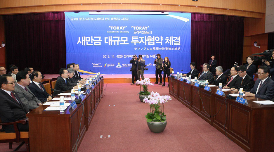 “도레이첨단소재는 전라북도 새만금에 외국계 기업으로는 최초로 입주하는 것입니다. 군산을 전략적 거점으로 육성하여 지역경제 발전에 기여하고 새만금의 외국인투자 활성화 모범 기업으로 성장할 것으로 봅니다.”
