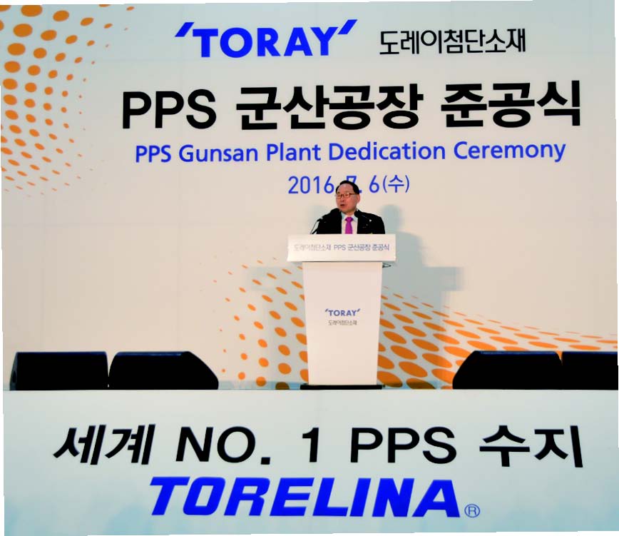 “군산공장이 계획대로 건설되고 오늘 첫 제품이 출하되기까지는 임직원들의 노고와 열정이 있었다는 것을 잘 알고 있습니다. 임직원들의 이러한 열정이 도레이첨단소재 PPS 사업의 성공과 군산공장의 도약을 이루어낼 것이라고 확신합니다.”