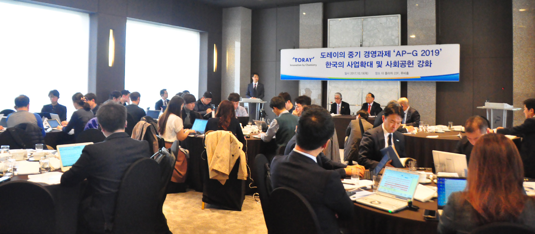 2017.10 도레이의 중기 경영과제 ‘AP-G 2019’ 한국의 사업확대 및 사회공헌 강화를 발표한 기자 간담회