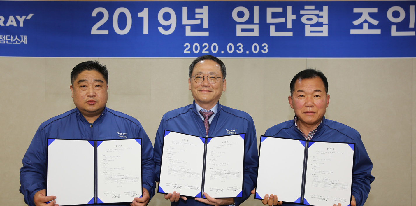 도레이첨단소재는 2019년 법인 통합 이후 1사 2노조의 복수노조형태로 운영되고 있다. 갈등을 최소화하기 위해 통합노사협회의, 통합노사 워크숍 등 다양한 협의체를 통해 정보 교류를 활성화하고, 정서적으로 교감할 수 있는 다각적인 노력들을 추진해 오고 있다. 향후에도 ‘회사의 지속성장’이라는 노동조합과 회사의 공통 목표를 달성하기 위해 함께 정진해 나갈 것이다.